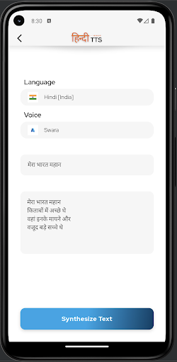 Questo testo per l'applicazione vocale converte i testi hindi e inglesi in discorsi dal suono naturale.