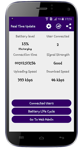 *Real-time update of Battery %, Connection Time, Signal Strength, Upload / Download Speeds.