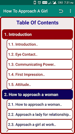 Dall'ambito di Aррrоасh una ragazza - si tratta di avvicinarsi e proporre una ragazza.Imparerai a superare la tua timidezza e ansia per incontrare la ragazza e parlare liberamente.Questa app ti istruirà come proporre una ragazza con i modi di un signorile.