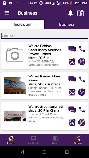 Business: gli individui possono contattare direttamente le aziende registrate utilizzando questa app.