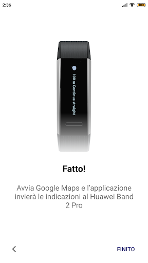 Questa applicazione ti permette di ricevere le indicazioni stradali di Google Maps direttamente sul tuo Huawei Band 2 Pro, Band 3 Pro, Band 4 Pro, Watch GT, Watch GT2, Watch GT2 Pro, Watch Fit, Honor Band 3, Band 4, Band 5 Watch ES, Watch GS, Watch e Magic Watch 2.