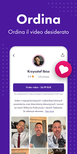 Hype Me è un portale che consente di ordinare video personalizzati dai tuoi artisti preferiti. Unisciti alla community e resta in contatto con influencer, atleti, musicisti, attori e YouTuber. L'applicazione ti permetterà di ordinare video per compleanni, fidanzamenti, addii al celibato, lauree e tante altre occasioni. Puoi ordinare video per te o per i tuoi amici. Scarica l'app e scopri quanto è facile!