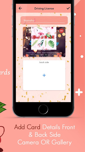 * Aggiungi la tua scheda anteriore e posteriore, salva le informazioni sulla scheda