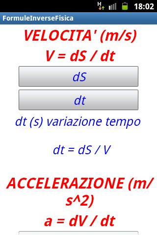 Anche se questa versione contiene poche formule generali, la maggioranza di esse con lettere diverse, si ritrovano nei problemi ed esercizi di fisica del biennio scuole superiori.