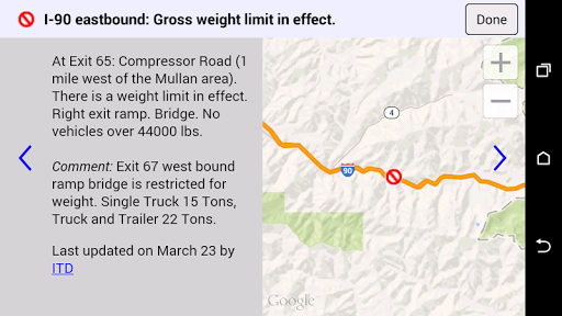 - Informazioni commerciali di restrizione del veicolo -Aggiornamenti in tempo reale sulle condizioni stradali invernali, incidenti stradali, lavori stradali, costruzione e chiusure stradali.