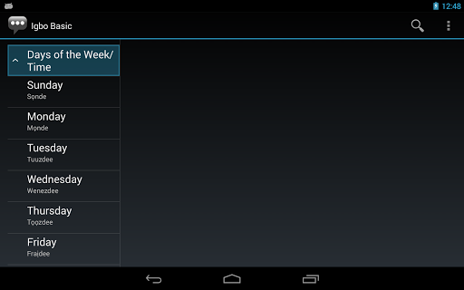 Usando questa app, è possibile selezionare una frase inglese e visualizzarne la traduzione e come pronunciarla in igbo.