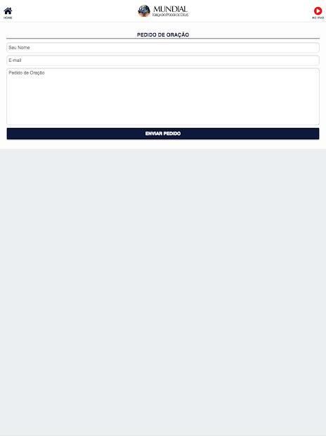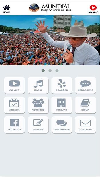 O novo aplicativo oficial da Igreja Mundial do Poder de Deus da Angola conta com as seguintes funcionalidades: