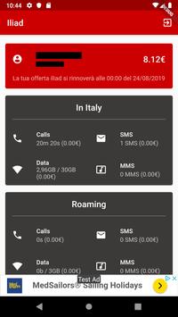 Con l'app Iliad potrai accedere con le tue credenziali alle informazioni sul tuo piano tariffario attivo, conoscere il credito residuo, la data di scadenza dell'abbonamento, i minuti, SMS, MMS e dati residui in Italia e in roaming, tutto questo in una semplice e graziosa app da portare sempre con te.
