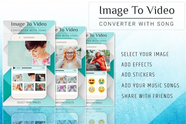 This application have great features for converting images into video. Image To Video Converter With Music is the easy way to create, edit and share amazing music videos and stories with your photo. This application have several steps, selecting photos, adding filters, text and music.