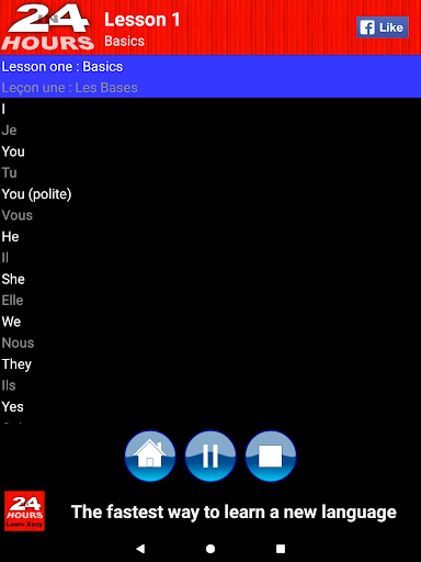 This is the newest and perhaps the most effective app for you to learn how to speak French in 24 hours! This app provides students, tourists, explorers or businessmen with an audiovisual learning experience on how to speak the French language.