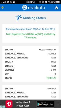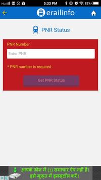 erailinfo application helps you to find all information related to Indian railways, like PNR status, information of trains between stations, train running status, train fare information and other related information.
