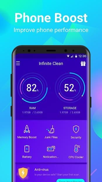 nfinite Clean is a fast, small, smart, Android phone optimizer, which you can use as super booster, junk file cleaner, power saver, CPU cooler and app manager.