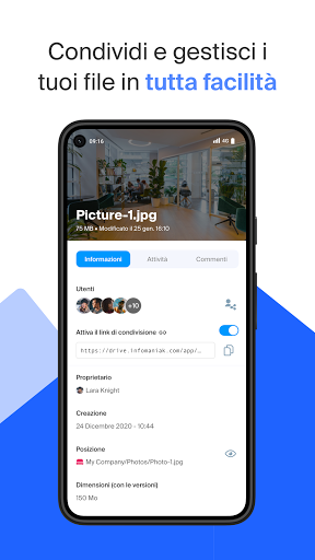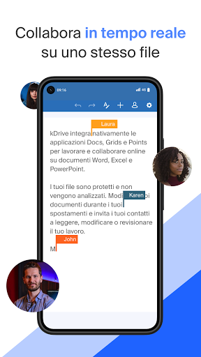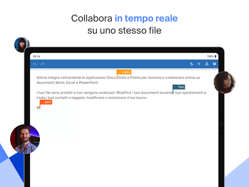 Infomaniak è un’impresa indipendente detenuta esclusivamente dai suoi addetti. I tuoi dati non verranno né analizzati, né rivenduti. Avrai il controllo totale dei tuoi dati e potrai lavorare e collaborare senza limiti in un ecosistema protetto. L'app kDrive è open source e il suo codice può essere consultato sul github di Infomaniak.