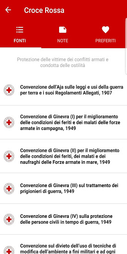 Diritto consuetudinario e trattati di diritto internazionale umanitario. L'app di Croce Rossa Italiana ti permette di accedere a numerosi testi normativi in italiano, inglese, francese e spagnolo fornendo strumenti utili alla loro consultazione. I documenti sono suddivisi in singoli articoli o sono disponibili nel testo completo ed in mezzo a tante informazioni puoi effettuare anche ricerche testuali di parole. Se necessiti di prendere appunti è possibile archiviare note su ogni articolo così come salvare quelli che preferisci in modo da recuperarli velocemente quando ne hai bisogno