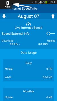 Internet Speed Info displays internet connection current speed in status bar, internet download and upload speed, amount of mobile and wi-fi data usage in notification panel du to which user can always monitor internet real speed not maximum available speed.