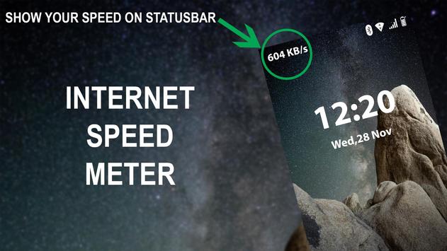 Internet Speed Meter displays your internet speed in status bar and shows the amount of data used in notification pane. This helps you to monitor network connection anytime while using your device.
