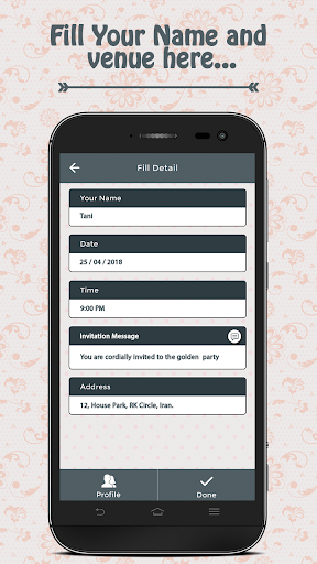 è la migliore applicazione per invitare tutti i tuoi parenti con la condivisione di una carta attraente con incredibile carta ColorName, Fontstyle e con le migliori carte. Ha alcuni semplici passaggi per creare carte di invito con semplici passaggi click come