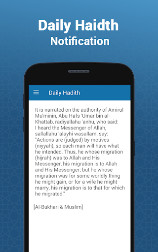 Quran Verse del giorno - Ti mostra un verso casuale del glorioso Corano ogni giorno. L'app include oltre 300 Ayah accuratamente selezionate e incluse nell'app per dare alla tua giornata un grande inizio. Puoi anche impostare i promemoria per ottenere la notifica giornaliera alla volta che desideri. Hadith of the Day - mostra un hadith casuale da oltre 200 Hadith accuratamente selezionato e incluso nell'app dai libri di Bukhari, musulmano, dawood, terdidhi ecc. Puoi anche impostare promemoria per ottenere la notifica giornaliera alla volta che desideri .