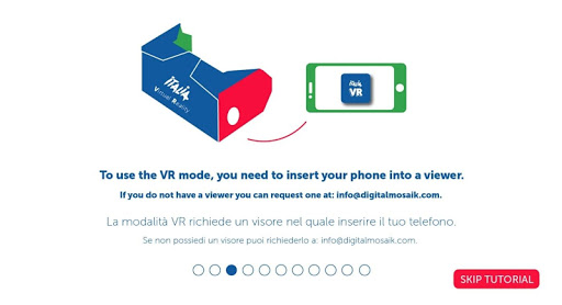 Puoi scegliere tra due modalità di visione: 360 gradi o VR; quest’ultima richiede l’uso di un visore di realtà virtuale nel quale va inserito lo smartphone.