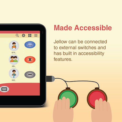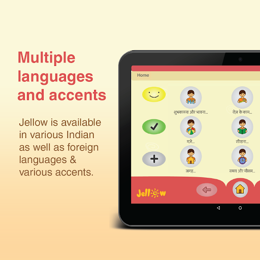Jellow Basic ha circa 1200 icone progettate con feedback degli utenti e oltre 10.000 righe di frasi pre-fatte.Inoltre, usando la tastiera ' tastiera 'Funzione, l'utente può anche generare nuove frasi e utilizzare l'app per parlarle ad alta voce.L'attuale versione dell'app consente all'utente di scegliere lingue come inglese, hindi, bengalese, marathi, tamil, telugu, spagnolo, tedesco e francese con più accenti indiani, americani, britannici, australiani) e voci.