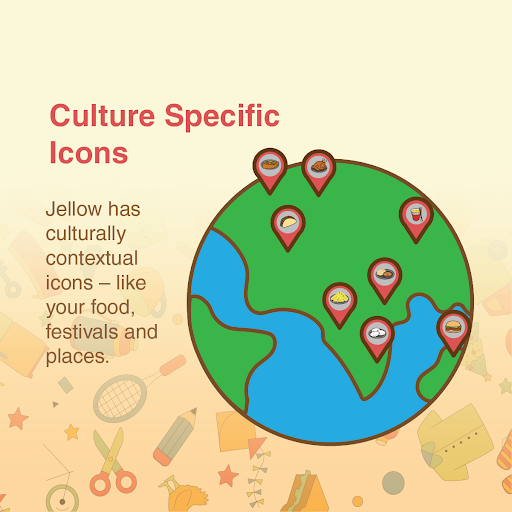 4.Icone specifiche della cultura: Jellow ha icone culturalmente contestuali - come il tuo cibo, festival e luoghi.