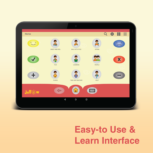Jellow Basic ha immagini visivamente accattivanti, è molto semplice, facile da usare e apprendimento, è culturalmente sensibile ai tuoi cibo, festival e luoghi con accesso a più lingue.L'interfaccia di Gellow ' è composta da Central ' Categoria 'pulsanti e ' espressivo 'pulsanti laterali.L'utente può fare in modo che l'app parli frasi semplicemente facendo clic su uno qualsiasi dei pulsanti di categoria seguiti da uno qualsiasi dei pulsanti espressivi.Il contenuto dell'app è organizzato in pulsanti di categoria di base che rendono facile l'accesso all'utente e trovare le icone desiderate.