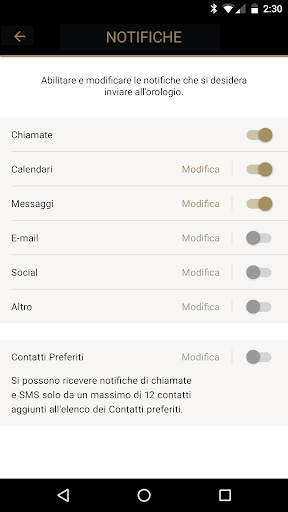 • Scegli da quali app desideri ricevere notifiche sullo smartwatch e seleziona l'intensità della vibrazione.