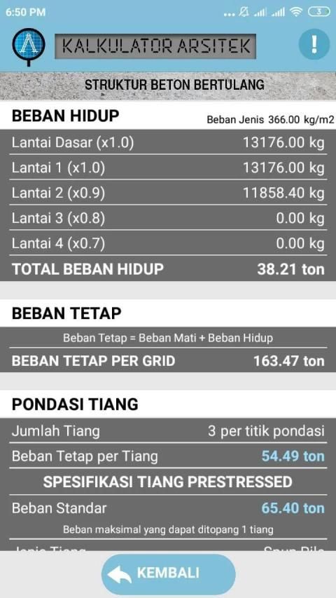 Architect Calculator Application - A is an application that can help design reinforced concrete structures with a span of no more than 12 meters. In this application, the material for columns, beams, and floor plates has been determined, namely reinforced concrete. The foundation system is a point foundation and a deep foundation with pile made from prestressed concrete in the form of spun pile and square pile.