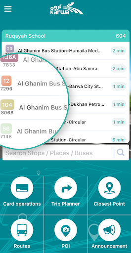 Il potente motore di ricerca della rete di trasporto è un altro pratico strumento erogato da Karwa Journey Planner, che consente ai passeggeri di cercare con semplici parole chiave e ottenere risultati istantanei di percorsi di autobus, fermate e posizioni in tutto il Qatar.