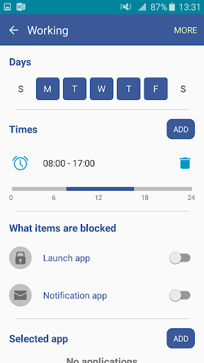 Set your applications that installed into your device to block any apps which make you neglect. You can also set dates and times to block these applications and their notifications based on your schedule or your work.