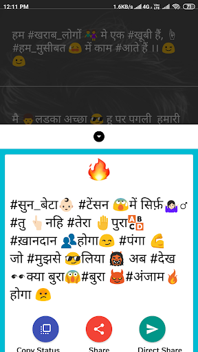 Attitude Status application is a great status application having various Status in Hindi and English Language.