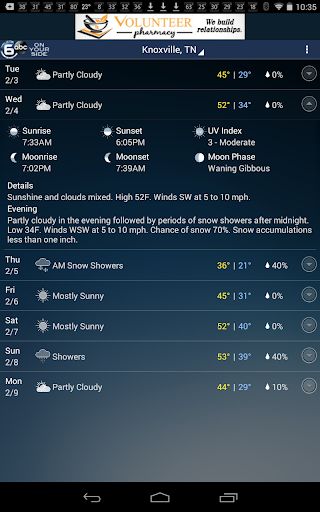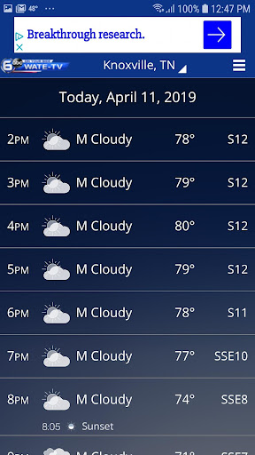 - le previsioni dell'ora per ora più accurate per il giorno successivo e la settimana per Knoxville e tutto il Tennessee East