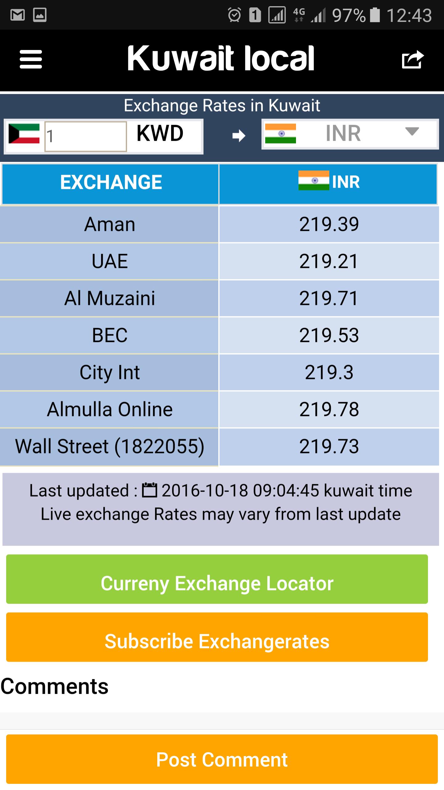Kuwait Exchange Rates - Get live Exchange rates of all currencies from all local banks and exchanges in Kuwait.
