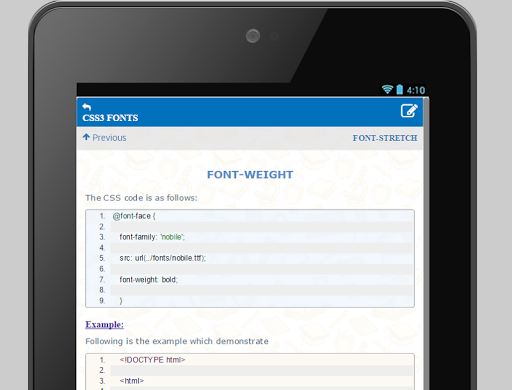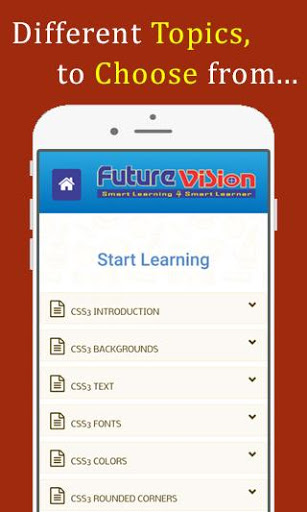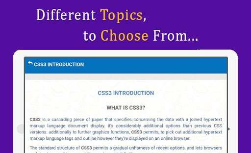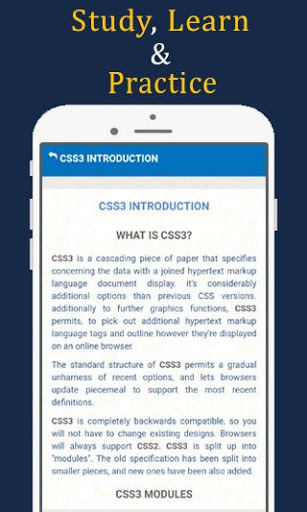 This css3 tutorial app contains offline mode. once our css3 app is installed you can learn topics without internet. That's a great feature because most of people looking for learn css offline.