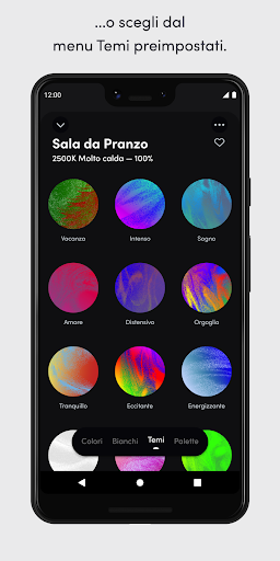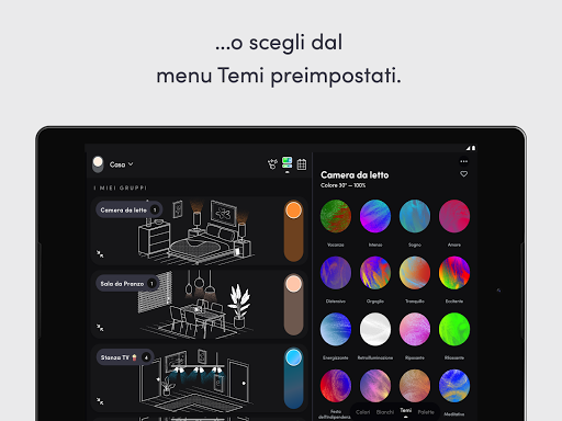 - Ambiente: programma una luce più calda la sera - calmante - e una luce più bianca la mattina - energizzante.