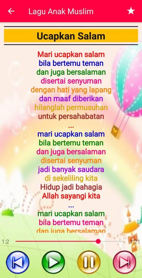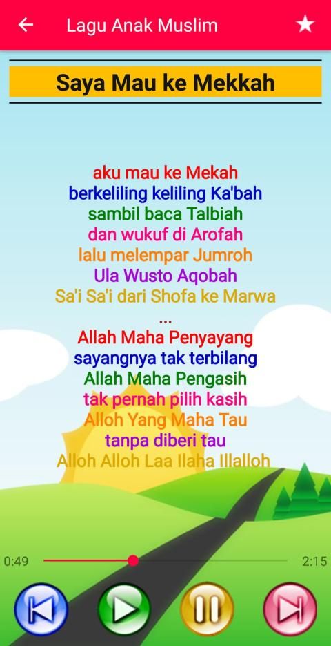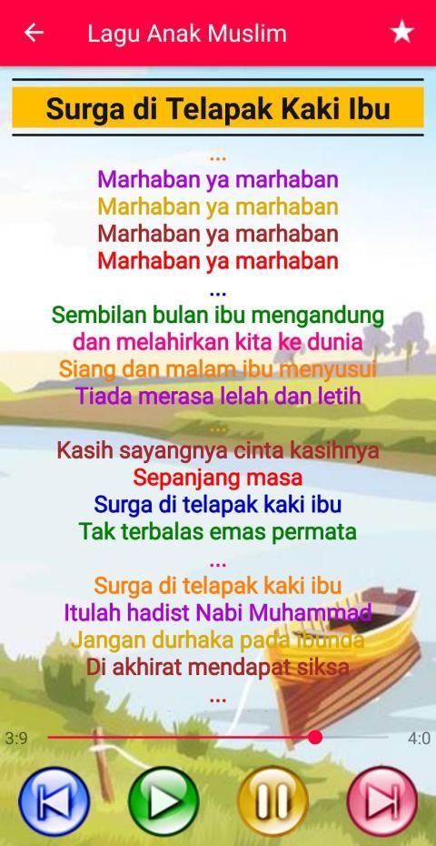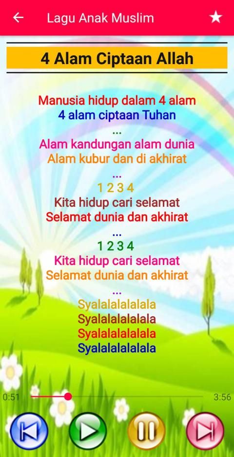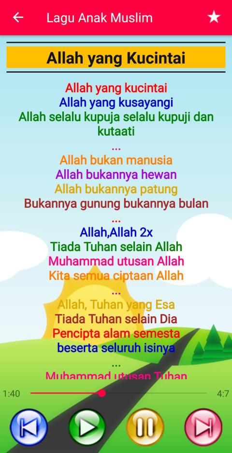 It is the most attractive application for Muslim Children Song, made with the best design that is unique and colorful, so it is attractive to children. Fast and lightweight application, and very simple and easy to use. The background / wallpaper is different for each song so it's liked by children.