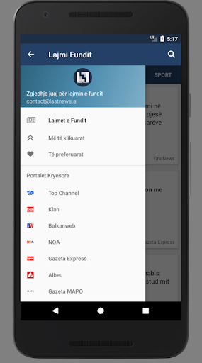 Në menunë e kontrollit mund të zgjidhni të lexoni lajmet nga mediat e preferuara, artikujt më të klikuar, artikujt e ruajtur, informacion rreth programit etj.