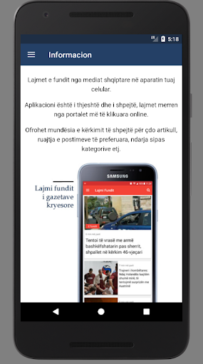 Aplikacioni është i thjeshtë, shumë i shpejtë dhe kompakt, mundëson shfaqjen e lajmeve të fundit, duke iu referuar faqeve kryesore informative.
