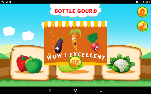 In this section, kids are shown vegetable flashcards. Along with the flashcards, their name appears on the screen with correct pronunciation.
