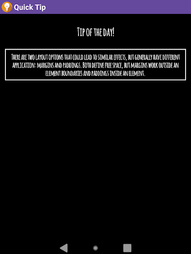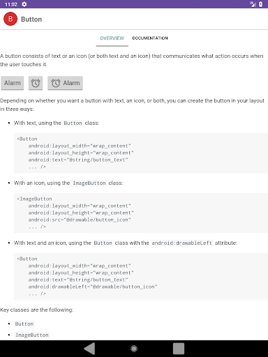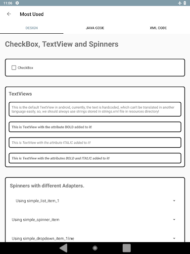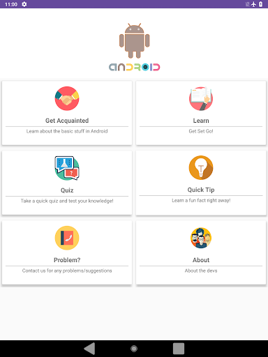 The very basic and first-must-know part of Android development is getting to know the UI components. This app does the same thing by making you acquainted with the structural components of Android from the Get Acquainted section of the app, which makes easy for beginners to understand and identify the building blocks of Android.