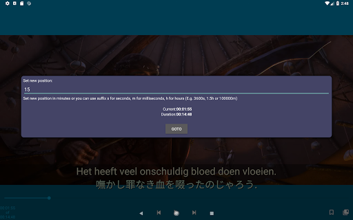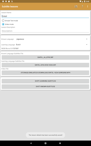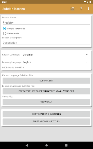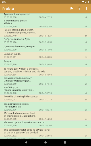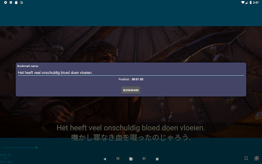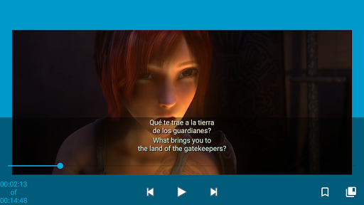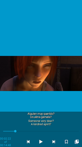 1) Modalità video: guarda il video con entrambi i sottotitoli di lingue (apprendimento e quelli conosciuti). Facile da tornare e ripetere una frase interessata, navigare attraverso i sottotitoli, la posizione dei segnalibri, invia frasi ad altre app.