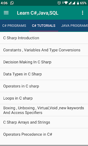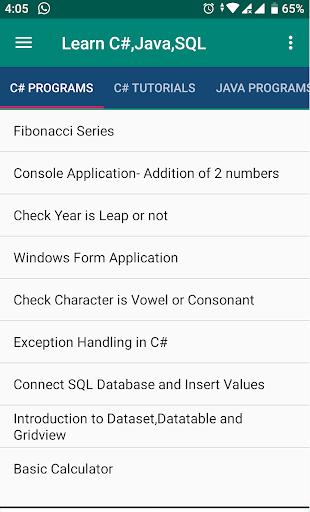 This app contains C# , Java,SQL Programs and tutorials available totally offline.