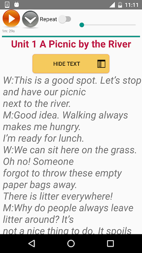 The app helps you learn everyday English by providing more than 600 conversations and all free listening about a wide range of topics, as well as great new features that help you listen and understand the conversations.