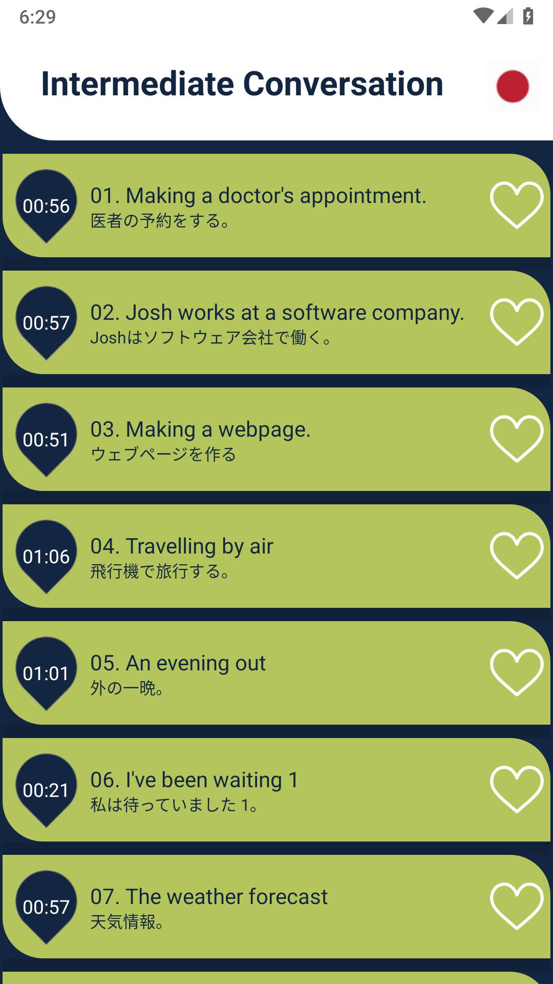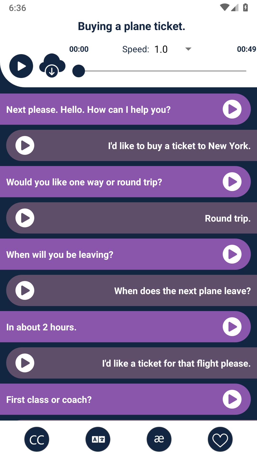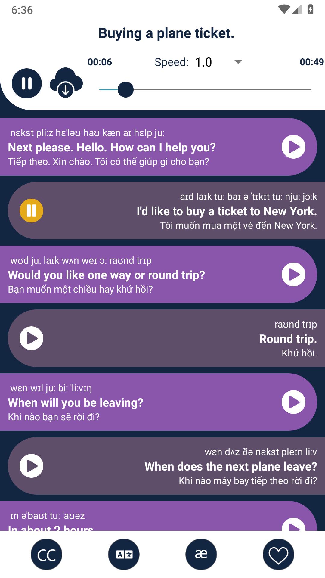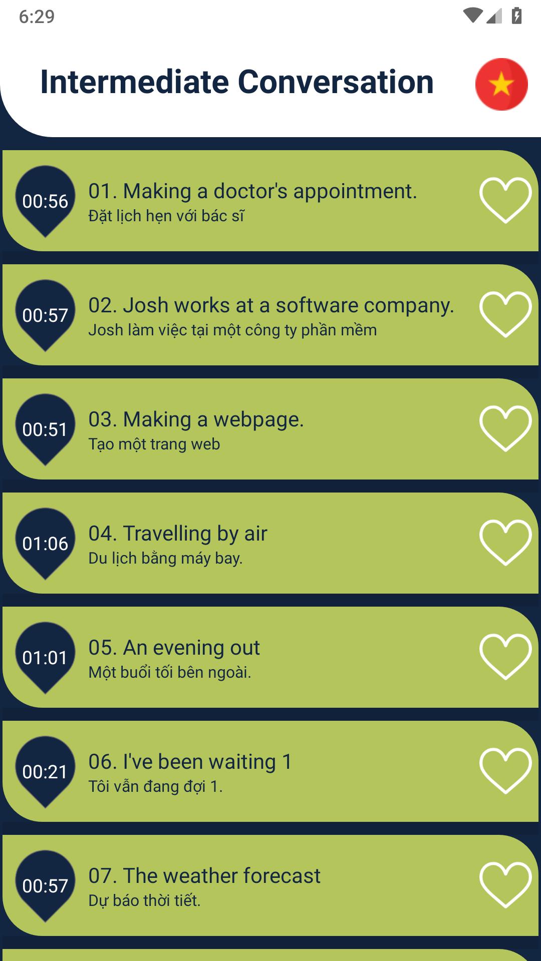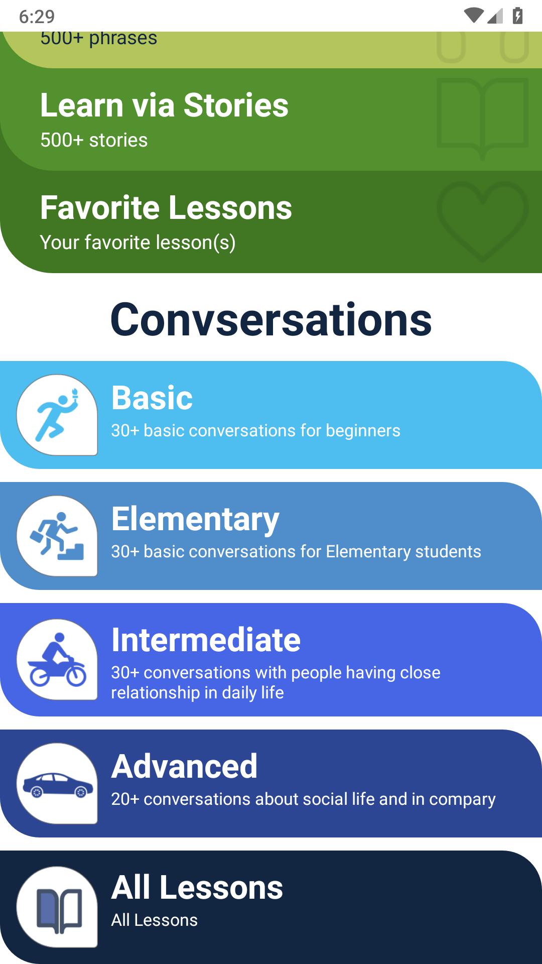 The app contain English lessons translate into 46 languages with audios and pronunciation.