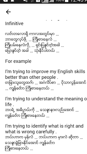 The best Mobile application to learn English for Myanmar people. All the lessons are explained in Burmese, so it will help learners to understand easily.