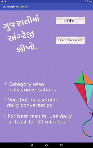 In Learn English in Gujarati application you can mark favourites, with favourites you can mark important Gujarati to English conversations or words as favourites and access those later. In this Learn English in Gujarati application we have also provided bookmarks feature.