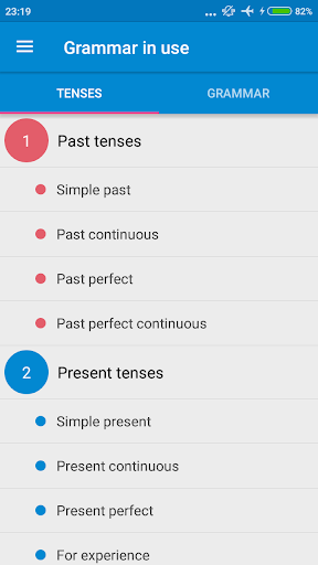 - Many grammar lession about tenses, basic: can, could, may/might, question tags, should have, used to ...