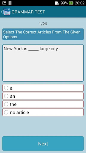 - Many grammar test about Active or Passive Voice, Adjectives, Adverbs, Articles, Auxiliary Verbs, Conditionals, Conjunctions, Determiners, Idioms, Interjections ...