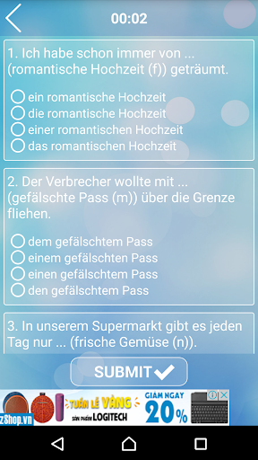 Più di 3.000 esercizi a scelta multipla perStrutture grammaticali popolari in tedesco.