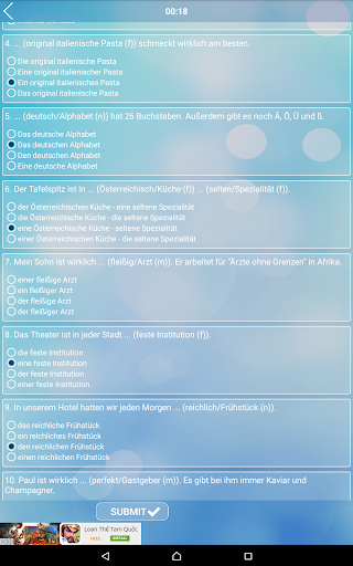 "Impara tedesco" è un'applicazione con oltre 10.000 esercizi a scelta multipla, per tutti i livelli di apprendimento in tedesco.